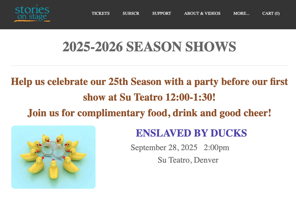 Stories On Stage—Enslaved By Ducks, Performance of “A Cat Called Grievous,” by R.L. Maizes and other stories.
